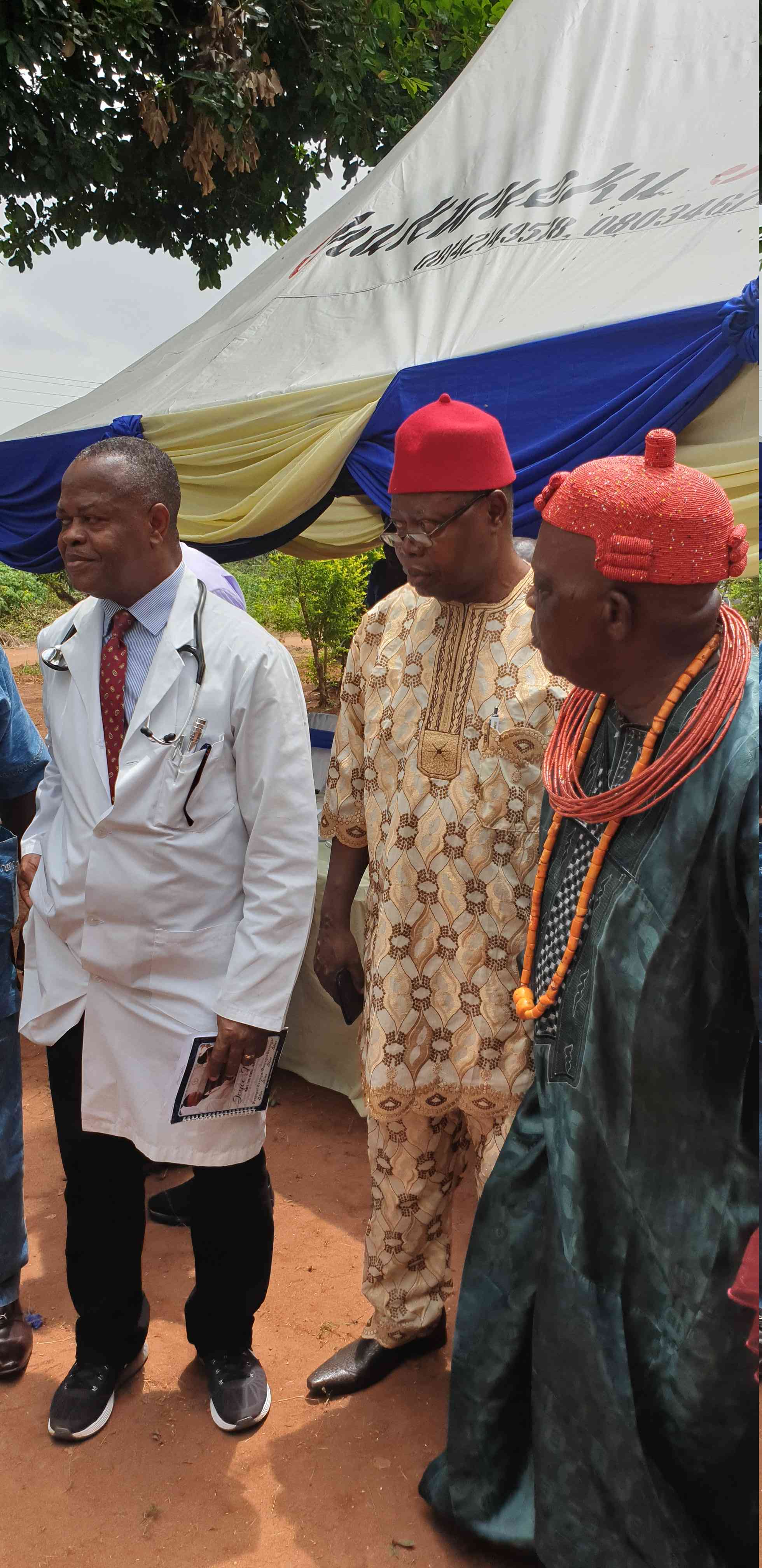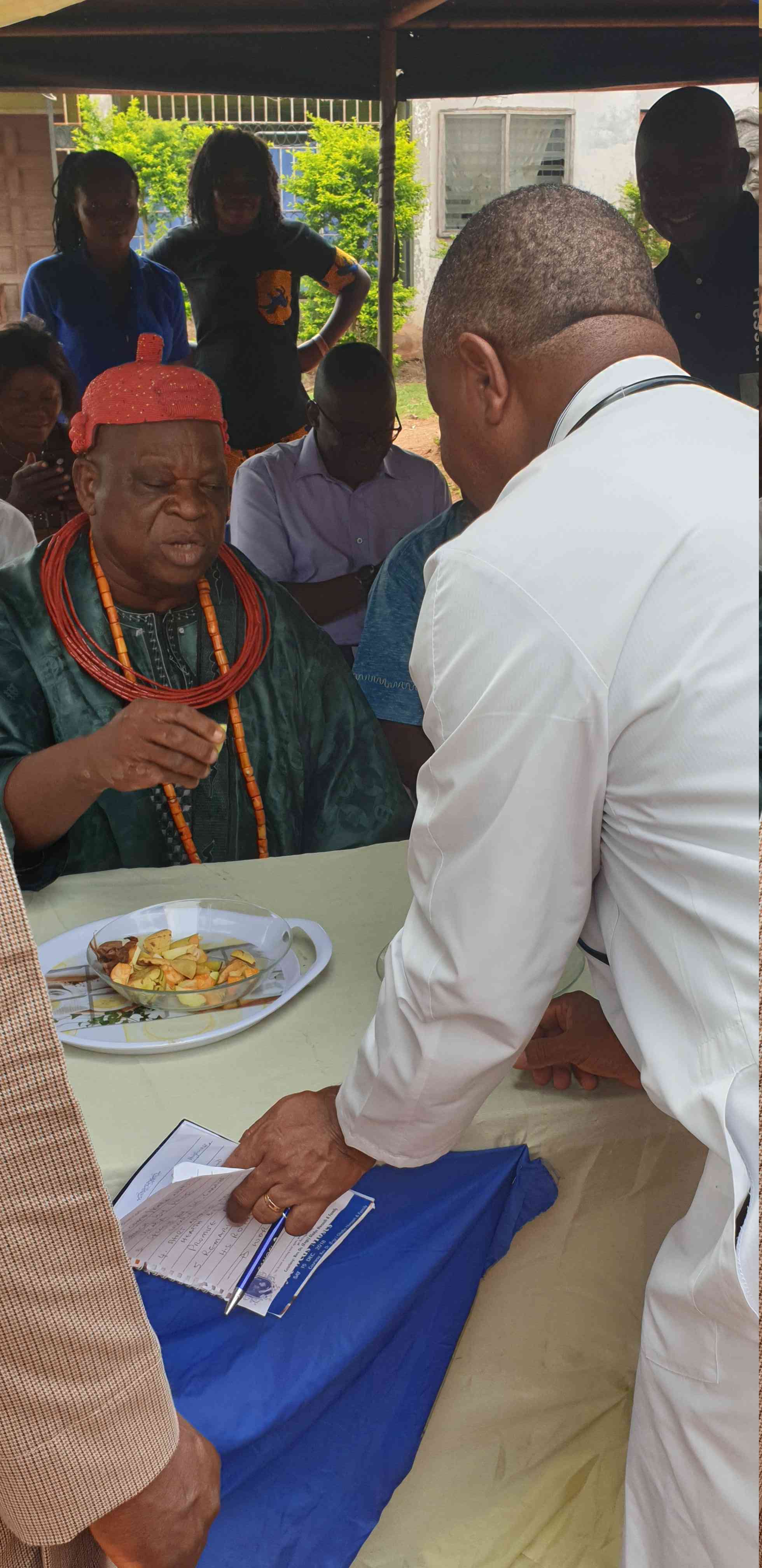 The Foundation is particularly grateful to His Royal Majesty, Obi (Dr) Ifeanyichukwu Alekwe, the 2nd, the Obi of Mbiri, and his Council of Chiefs for their support; the entire Ukala Family for their continued support and sacrifices for the Mbiri Community and the amazing volunteers who made the event possible including - Dr. Promise Okonji (Optometrist), Mr. Joseph Okonji (Pharmacist), Dr. Ogechi Davorjih (Medical Doctor), Miss Edna Ehimika (Registered Nurse), Miss Ijeh Justina (Registered Nurse), Iheuwaro Peace (Auxiliary Nurse) and Mrs. Ozuem (Midwife at Mbiri Maternity Centre). The Foundation is also immensely grateful to Hon. Sunday Bamah, Executive Assistant to Governor Okowa of Delta State, for his incredible and unfailing service to the Mbiri people and the Ukala family. Special recognition and thank you to Dr. Idiaghe of Anioma Clinic, Boji Boji, Owa, who kindly supplied the examination couch and screens for the health fair.